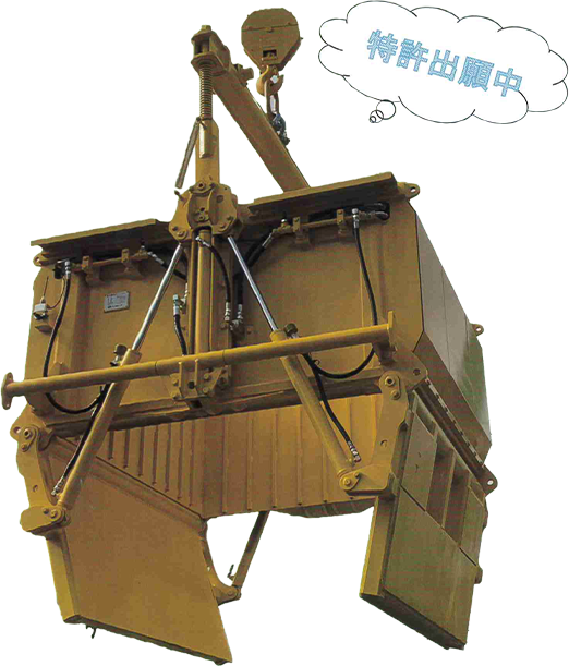 クレーンに吊るすだけで土砂などの運搬から排出までの作業が行えます。